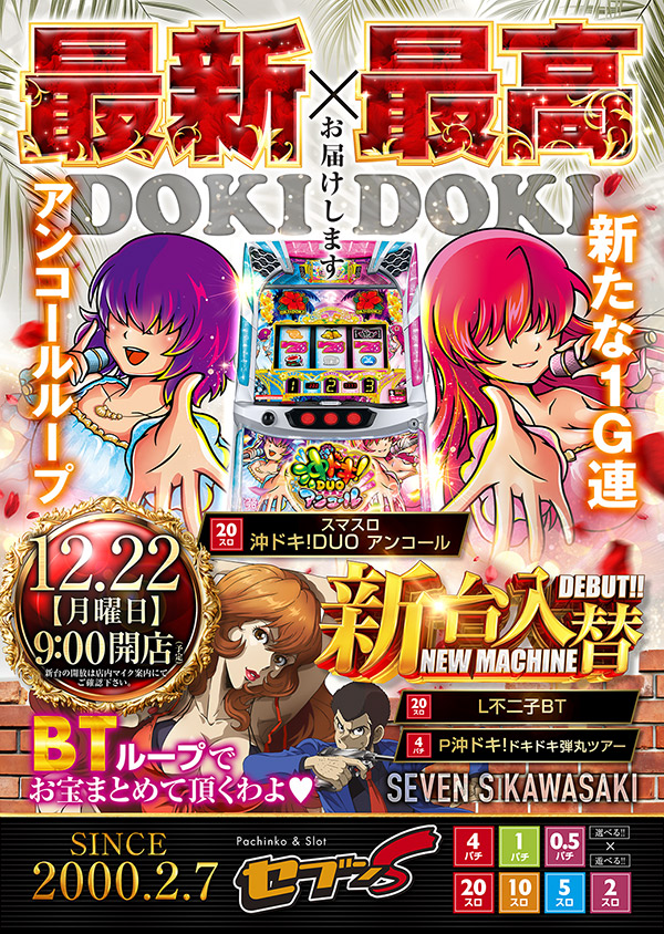 - 楽しさ充実★4パチ★1パチ★0.5パチ★20スロ★10スロ★5スロ★2スロ★選べるSEVENスタイル