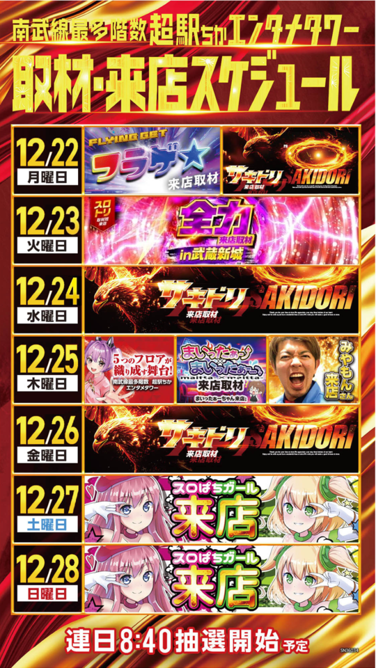 - 入場抽選時間 8:40 店舗正面入り口にお集まりください。