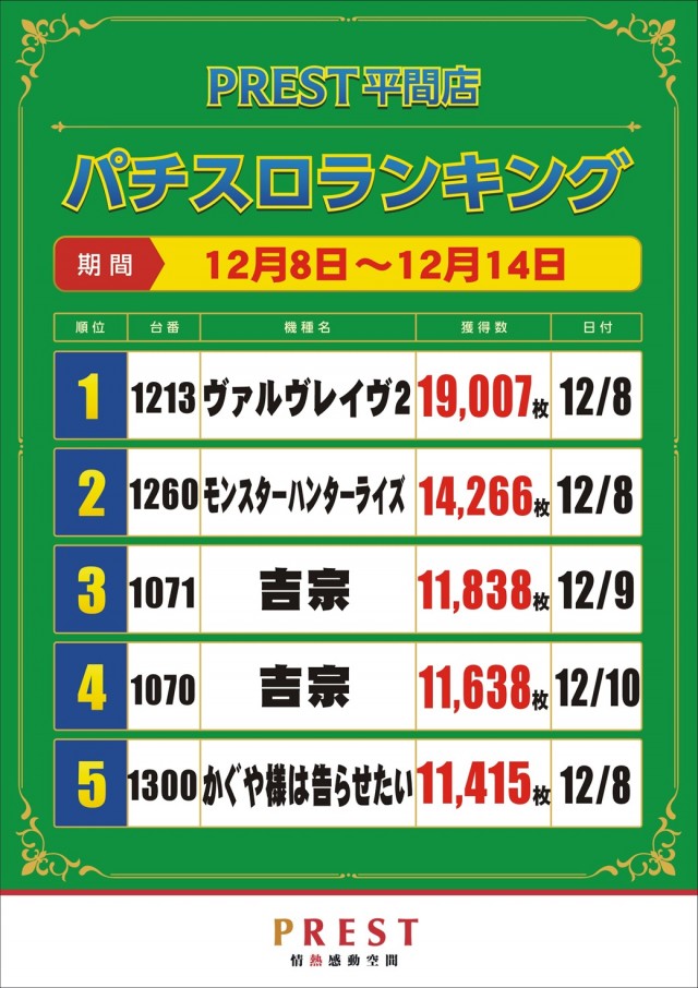 プレスト平間店Ⅱの設置機種