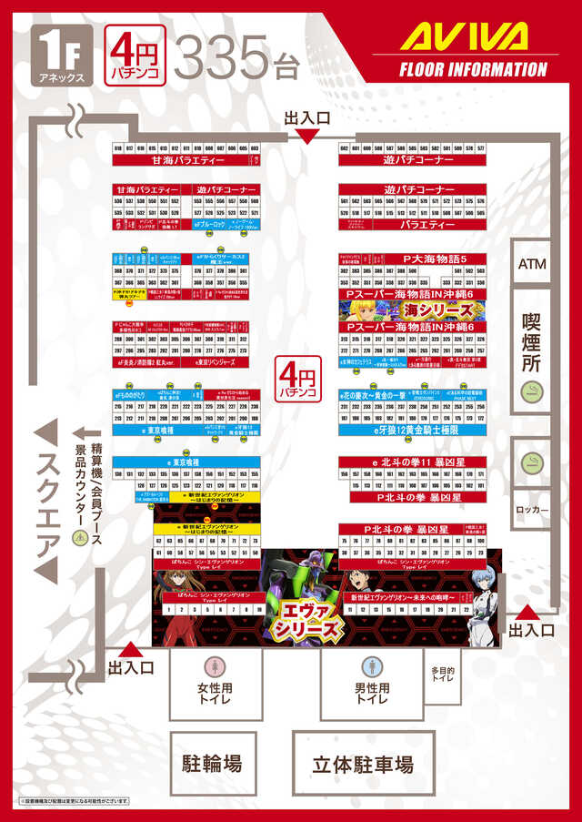 - [200玉/200]パチ:150台 [1000円/250玉]パチ:335台 [1,000円/160枚]スロ:24台 [1000円/46枚]スロ:331台