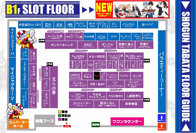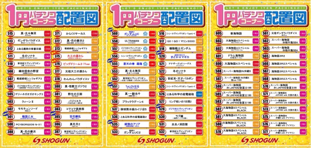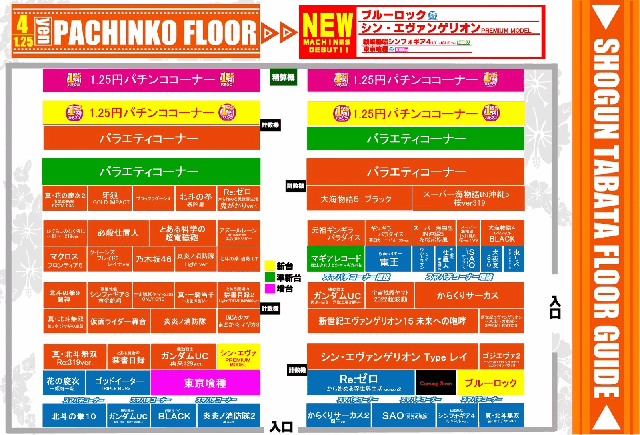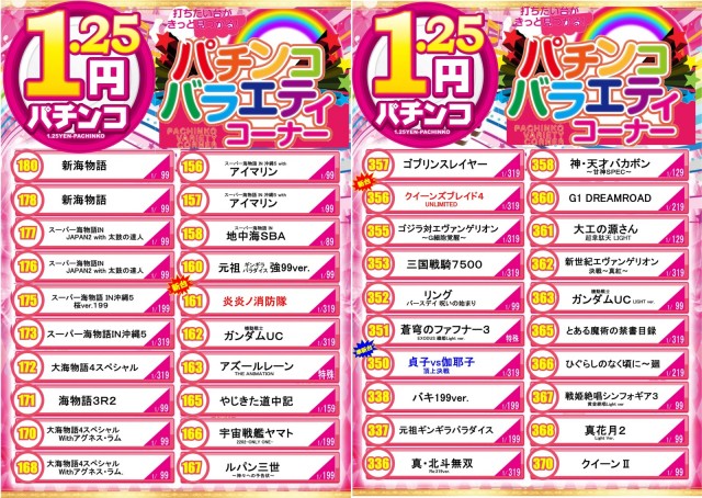 - [4]パチ:257台 [1]パチ:84台 [1.25]パチ:40台 [1000円/46枚]スロ:211台