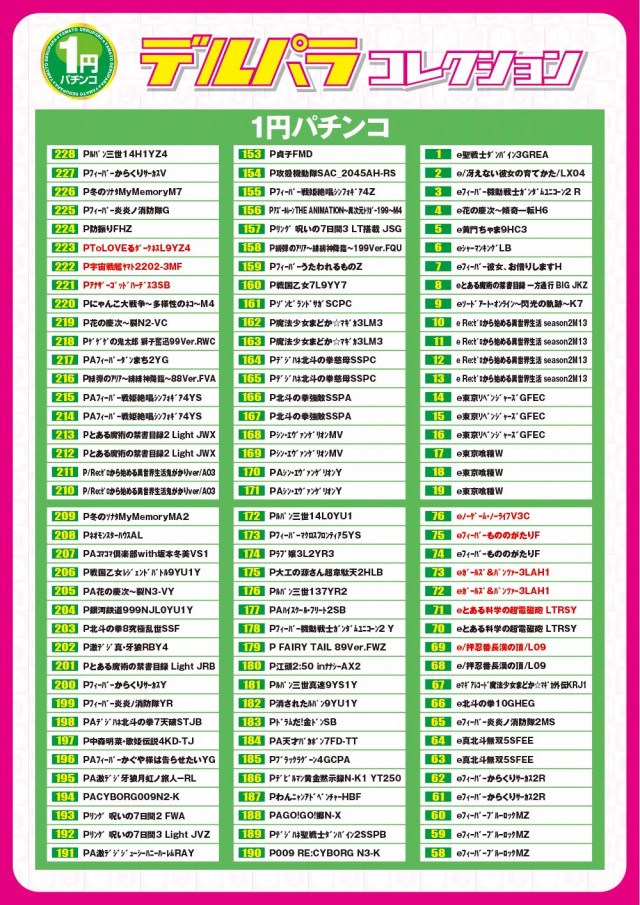 - [1]パチ:228台 [5]スロ:320台 [1000円/46枚]スロ:21台 [12.5]スロ:240台