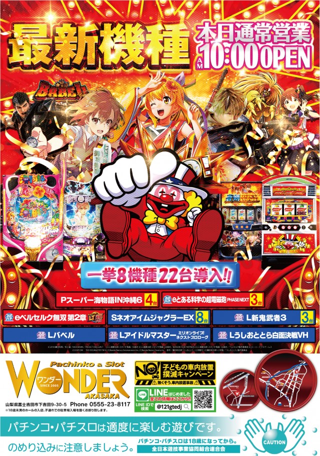 - [None]パチ:127台 [None]パチ:256台 [None]スロ:150台 [None]スロ:30台