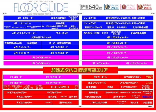 - [500円/120玉]パチ:280台 [200円/192玉]パチ:160台 [1000円/48枚]スロ:200台