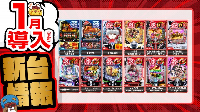 - [4]パチ:101台 [1]パチ:9台 [1000円/46枚]スロ:160台 [1000円/184枚]スロ:14台