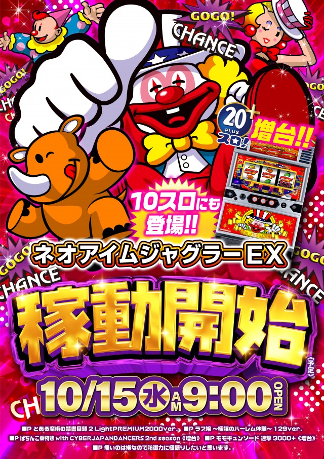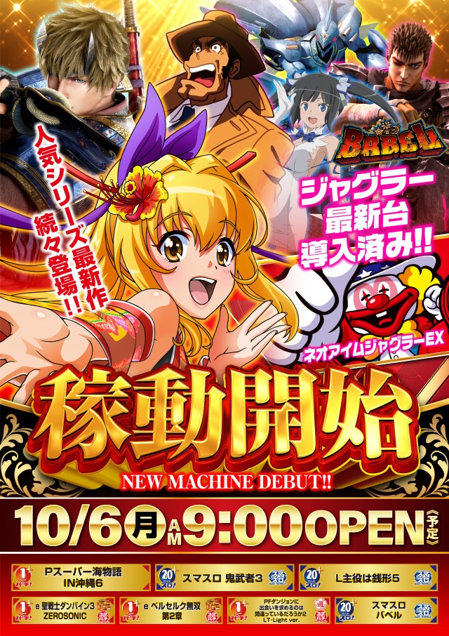 - [1.111]パチ:309台 [1000円/90枚]スロ:134台 [1000円/46枚]スロ:70台