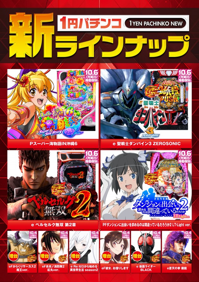 - ☆1円パチンコで最新台が打てる!設置機種数県下最大☆