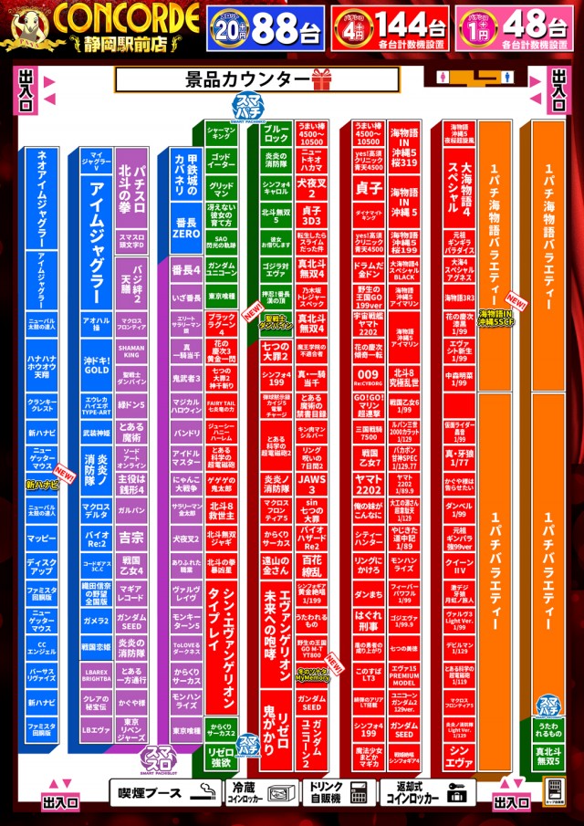 - [1.111]パチ:47台 [4.386]パチ:144台 [1000円/46枚]スロ:88台
