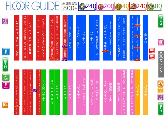 - [4]パチ:240台 [1.11]パチ:200台 [0.56]パチ:40台 [500円90枚]スロ:80台 [1000円/46枚]スロ:240台