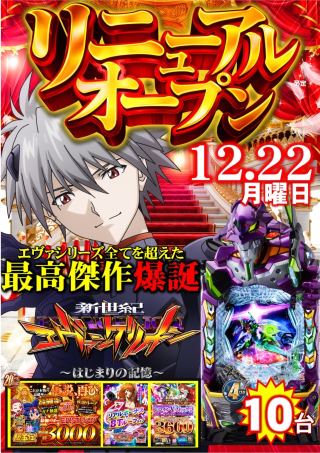 - [4]パチ:240台 [100円/180玉]パチ:40台 [1.11]パチ:200台 [21.74]スロ:240台 [500円90枚]スロ:80台