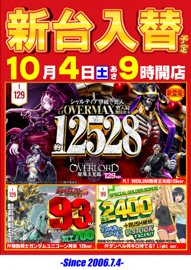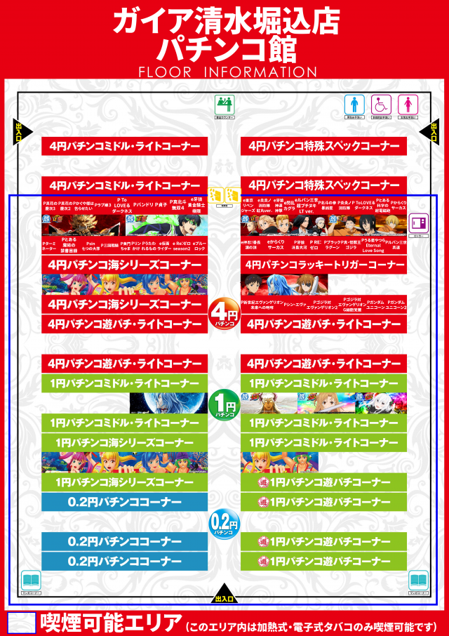- [1]パチ:176台 [4]パチ:245台 [0.2]パチ:48台 [1000円/46枚]スロ:239台 [1000円/180枚]スロ:38台 [1000円/460枚]スロ:30台