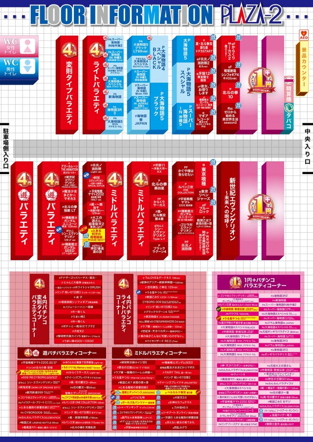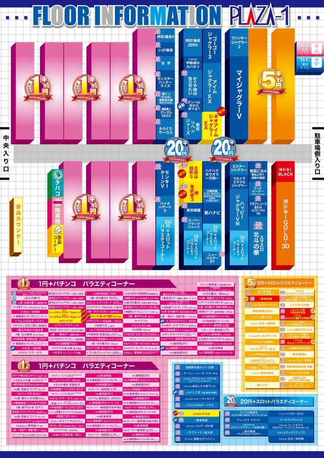 - [4]パチ:252台 [200円180玉]パチ:199台 [5.5]スロ:32台 [1000円/46枚]スロ:154台