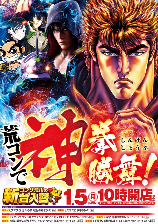 - 10:00 ~ 23:00(遊技終了22:45 延長遊技終了22:50)