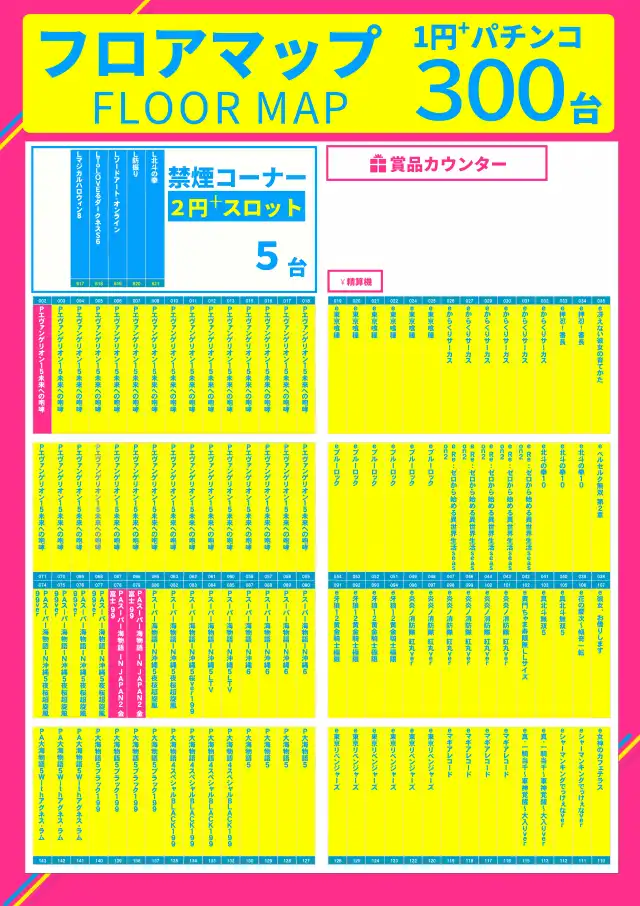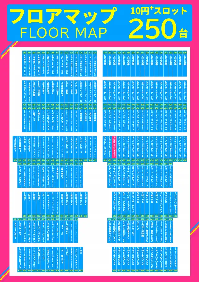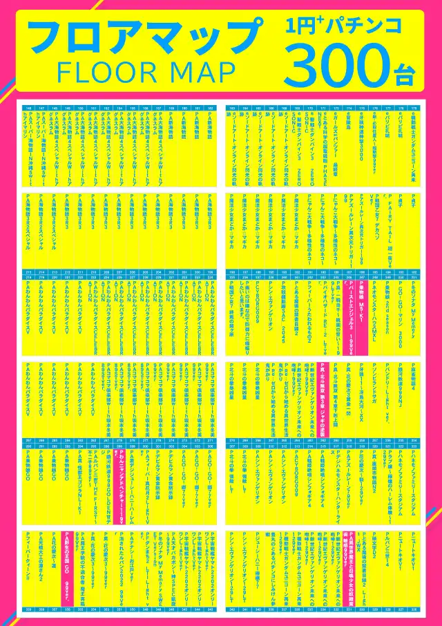 - [1.11]パチ:300台 [11.1]スロ:250台 [None]スロ:5台