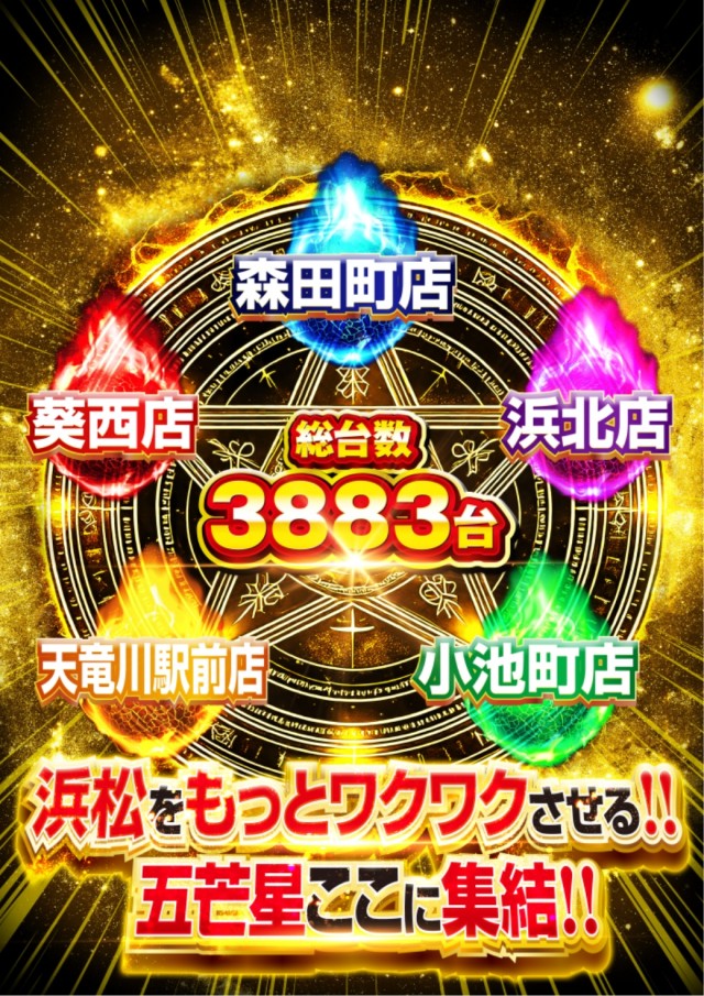- [パチ] 4円:160台 200円/180玉:120台 100円/180玉:80台 計360台 [スロ] 1000円/46枚:181台 1000円/180枚:96台 計277台