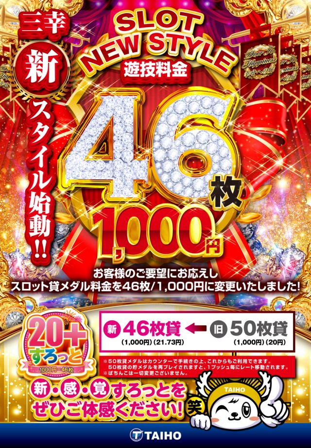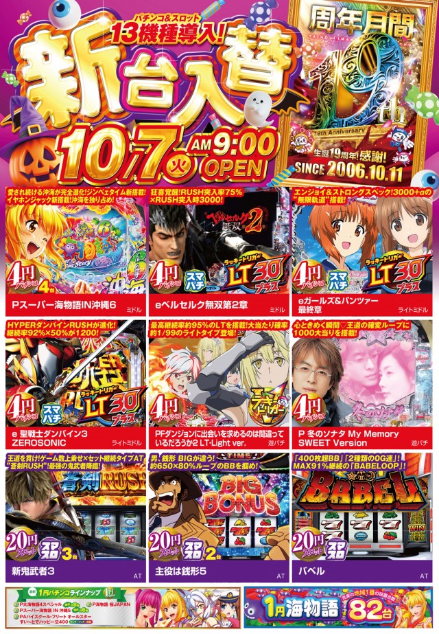 - [4]パチ:160台 [1]パチ:200台 [1000円/46枚]スロ:200台