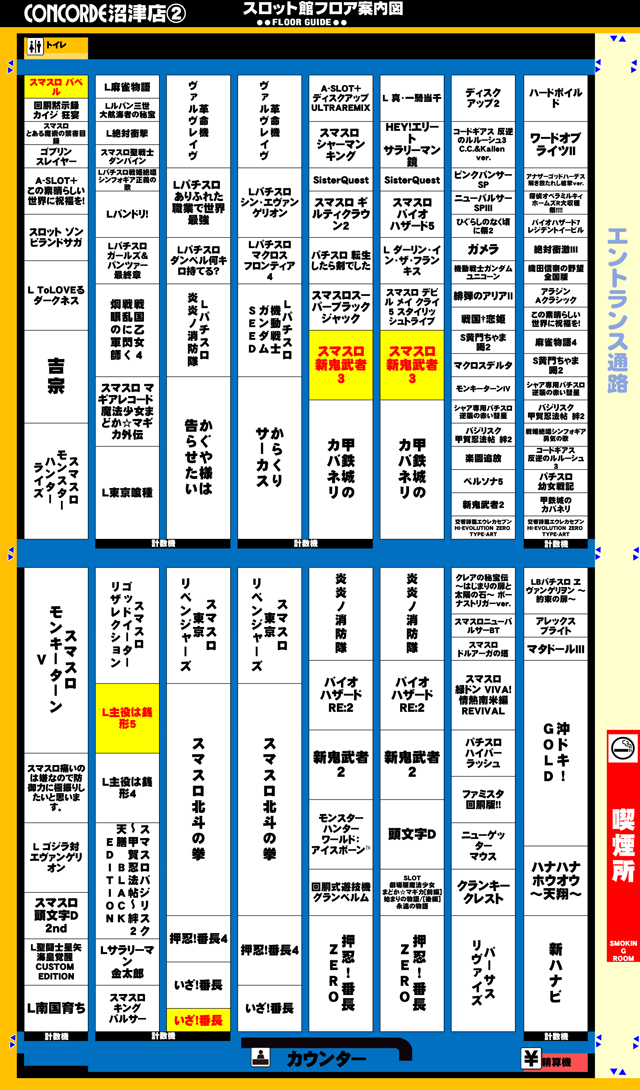 - [4.386]パチ:280台 [1.111]パチ:120台 [1000円/46枚]スロ:360台 [1000円/180枚]スロ:40台