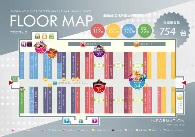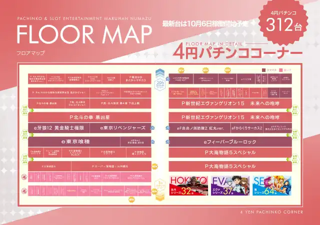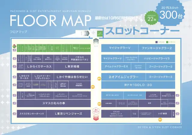 - [4]パチ:312台 [1]パチ:120台 [1000円/46枚]スロ:300台 [5.49]スロ:20台