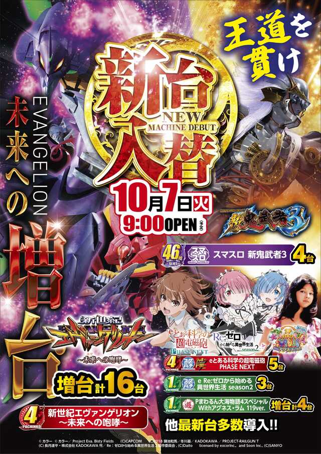 - [1.1]パチ:165台 [4]パチ:208台 [1000円/46枚]スロ:265台 [5.5]スロ:28台