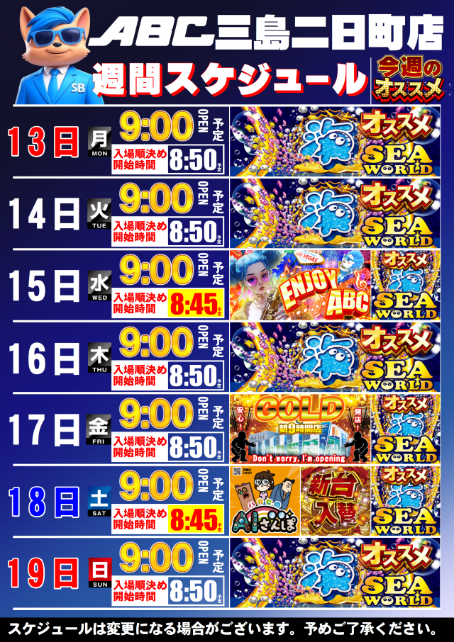 ABC三島二日町店の設置機種