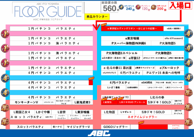 - [4]パチ:224台 [1]パチ:120台 [21.74]スロ:182台