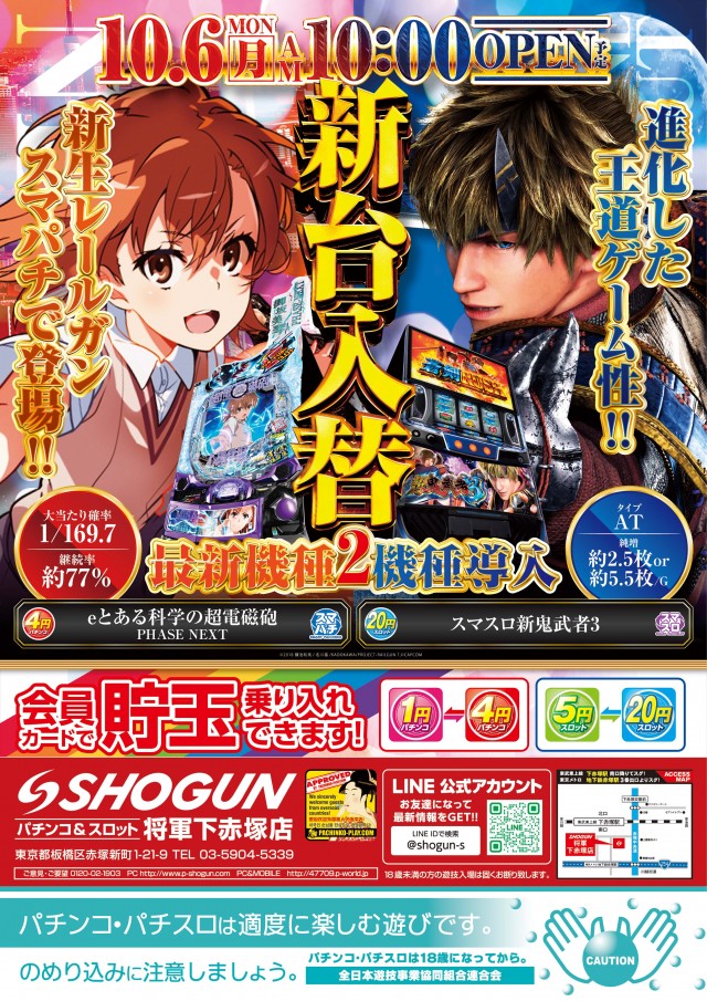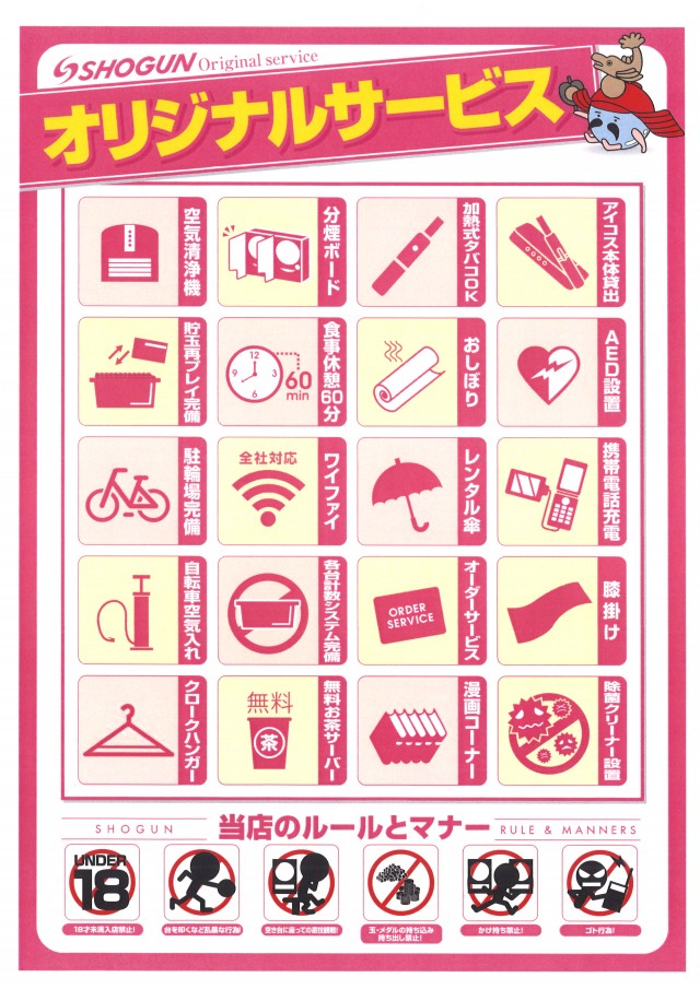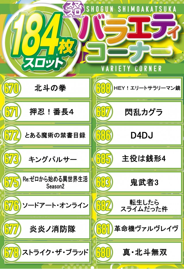 - [4]パチ:120台 [1]パチ:78台 [1000円/46枚]スロ:112台 [1000円/184枚]スロ:16台