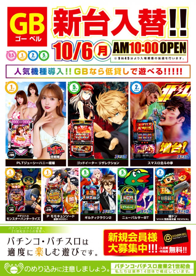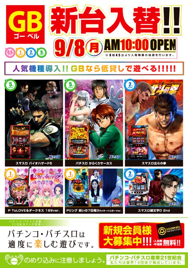 - 1パチ:128台 0.5パチ:26台 5スロ:98台 2スロ22台