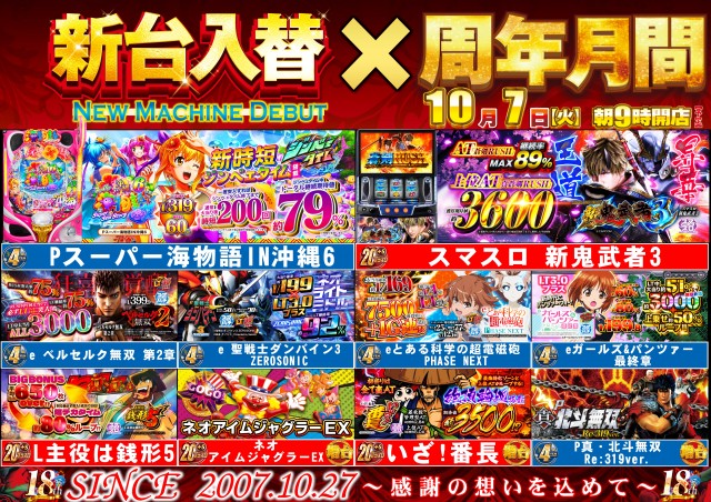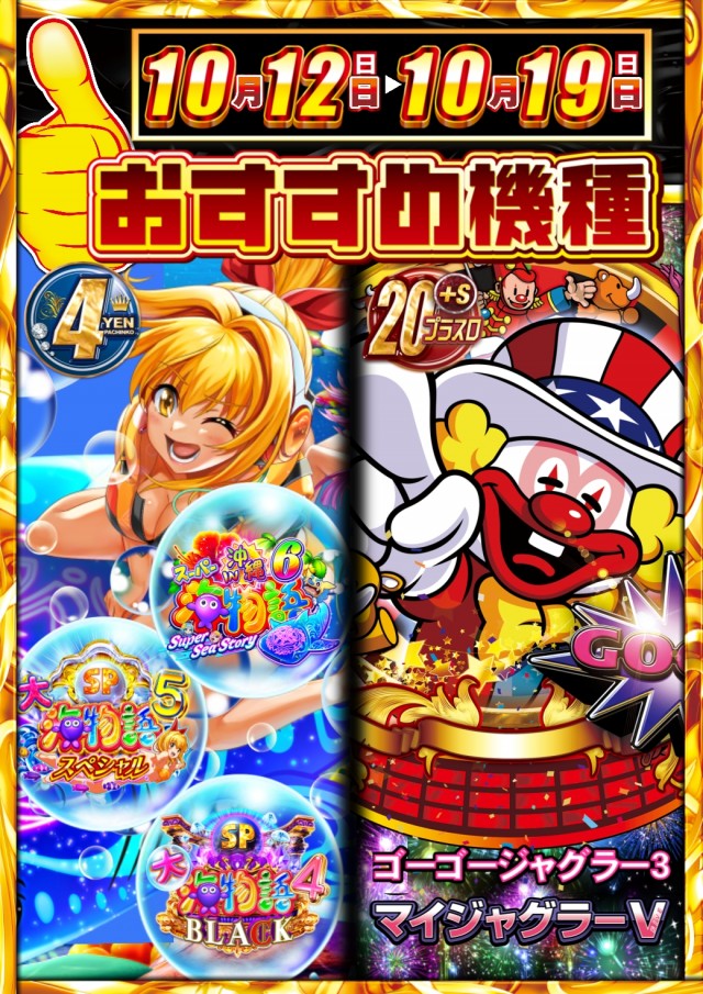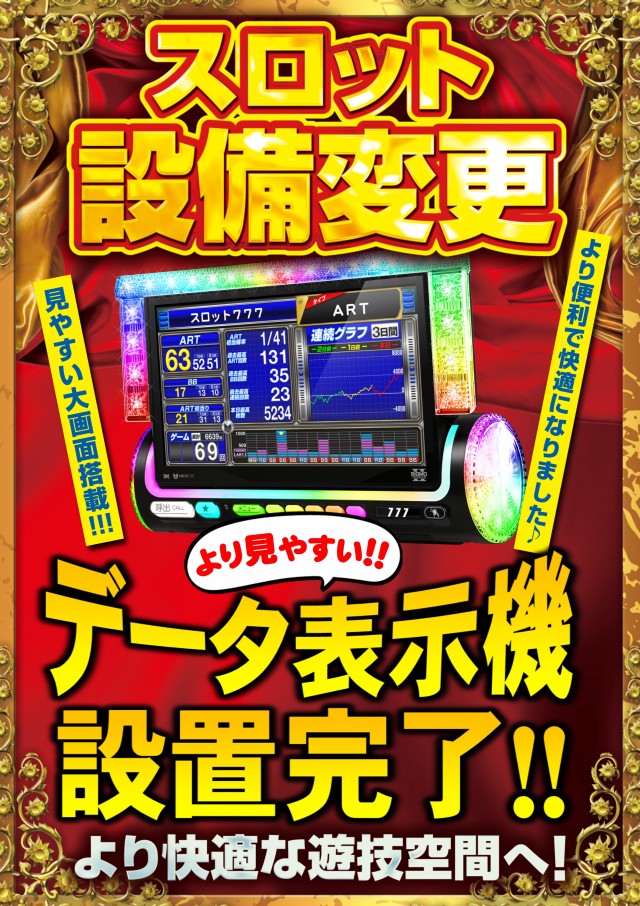 - [4]パチ:192台 [1]パチ:159台 [21.74]スロ:174台 [500円90枚]スロ:19台