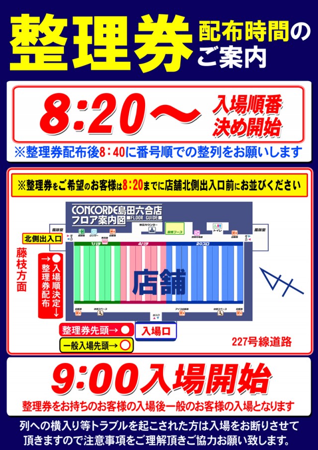 - 8:40より入場順番決め(順不同)を行ないます。