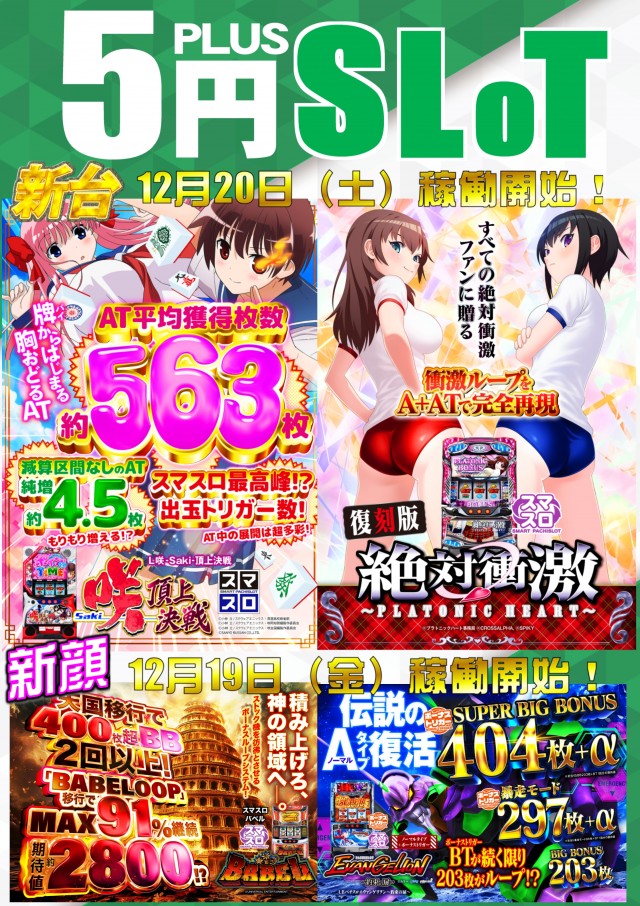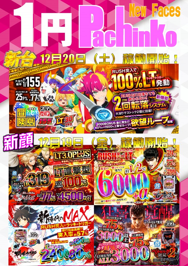 - [4]パチ:240台 [1]パチ:120台 [1000円/180枚]スロ:40台 [1000円/46枚]スロ:156台
