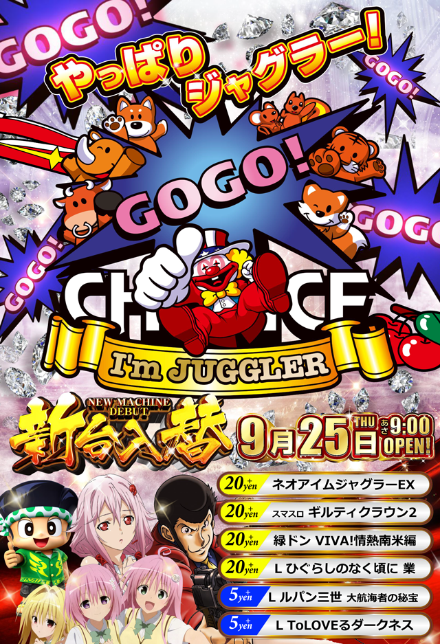- [100円/25玉]パチ:96台 [100円/90玉]パチ:96台 [100円/180玉]パチ:24台 [1000円/46枚]スロ:48台 [1000円/180枚]スロ:24台