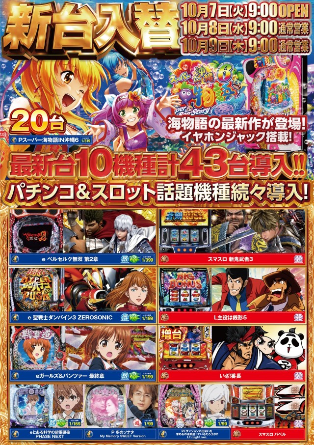 - [1]パチ:160台 [4]パチ:306台 [21.74]スロ:200台