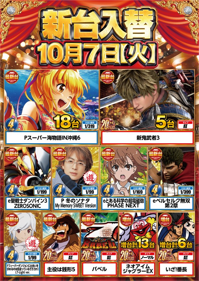 - [4]パチ:280台 [1]パチ:160台 [1000円/46枚]スロ:180台[500円90枚]スロ:20台
