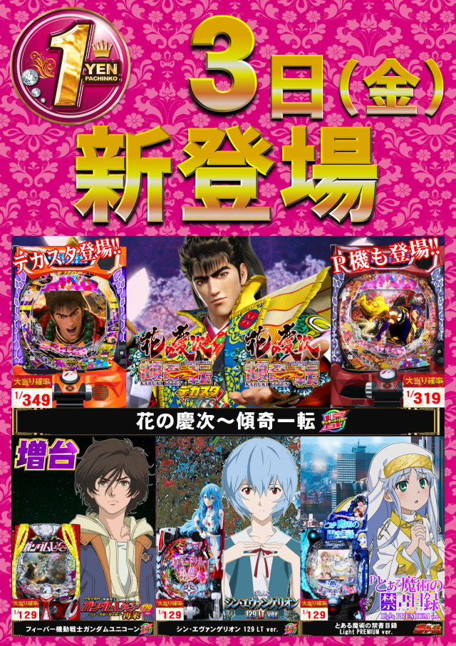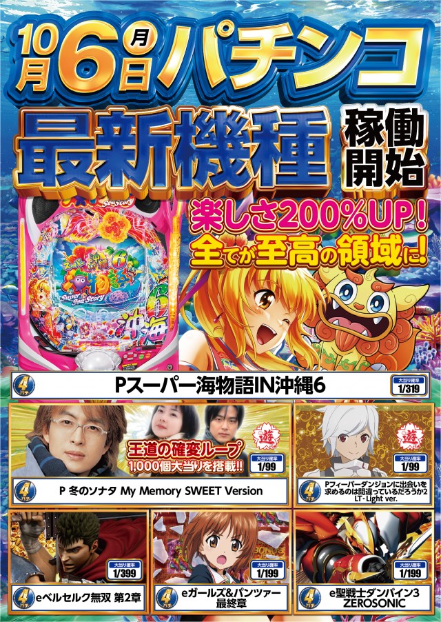 - [パチ]4円:200台 1円:160台 計360台 [スロ]1000円/46枚:160台 1000円/180枚:40台 計200台
