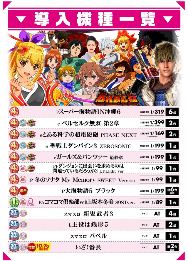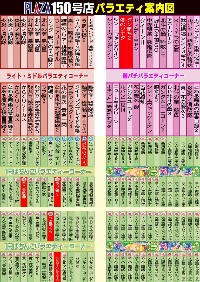 パチンコプラザ150号店の設置機種