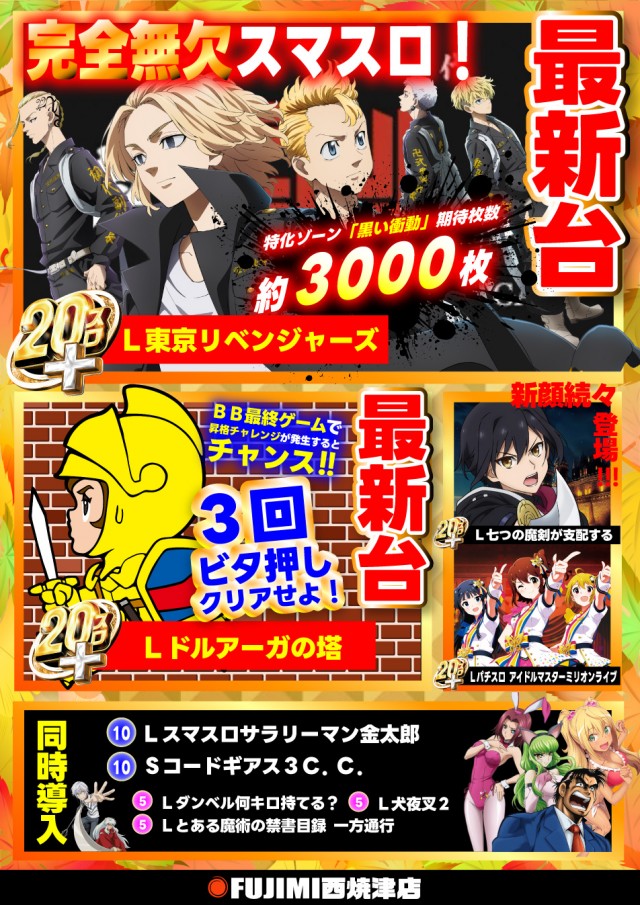 - [1]パチ:112台 [4]パチ:18台 [1000円/46枚]スロ:137台 [1000円/90枚]スロ:45台 [1000円/180枚]スロ:12台