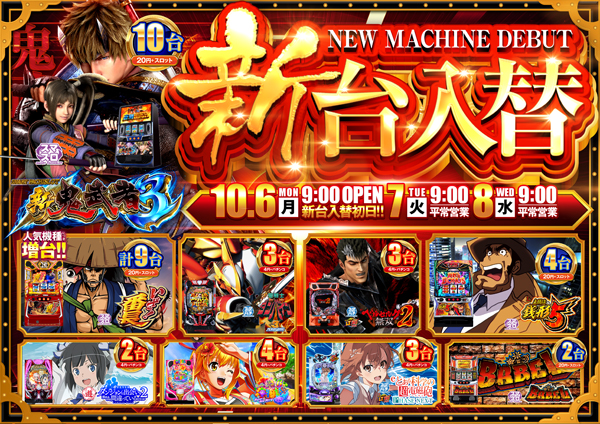 - 1000円/46枚スロ:441台 1000円/180枚スロ:16台 4.386パチ:240台 1.111パチ:80台
