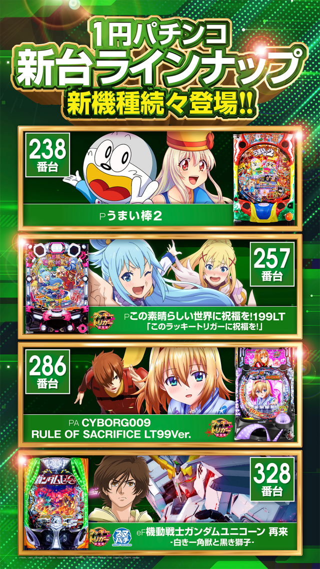 - 当店は、来店ポイント導入店です!! 1円パチンコ、5円スロット、コーナー貯玉・再プレイ無制限!! 大当たりデータ公開中です!!