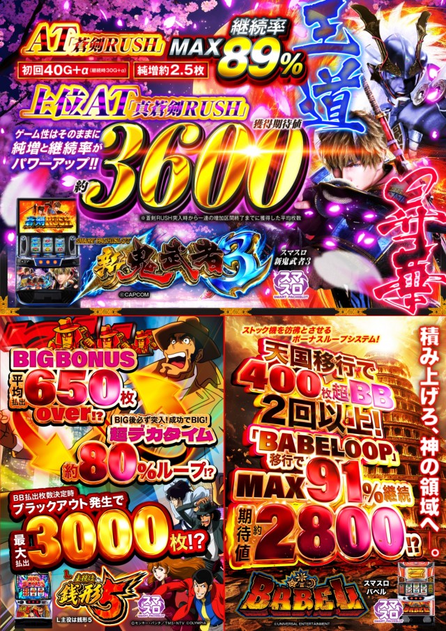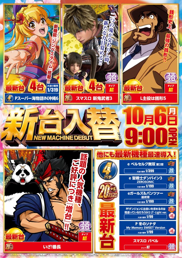 - [1]パチ:38台 [4]パチ:160台 [21.74]スロ:198台