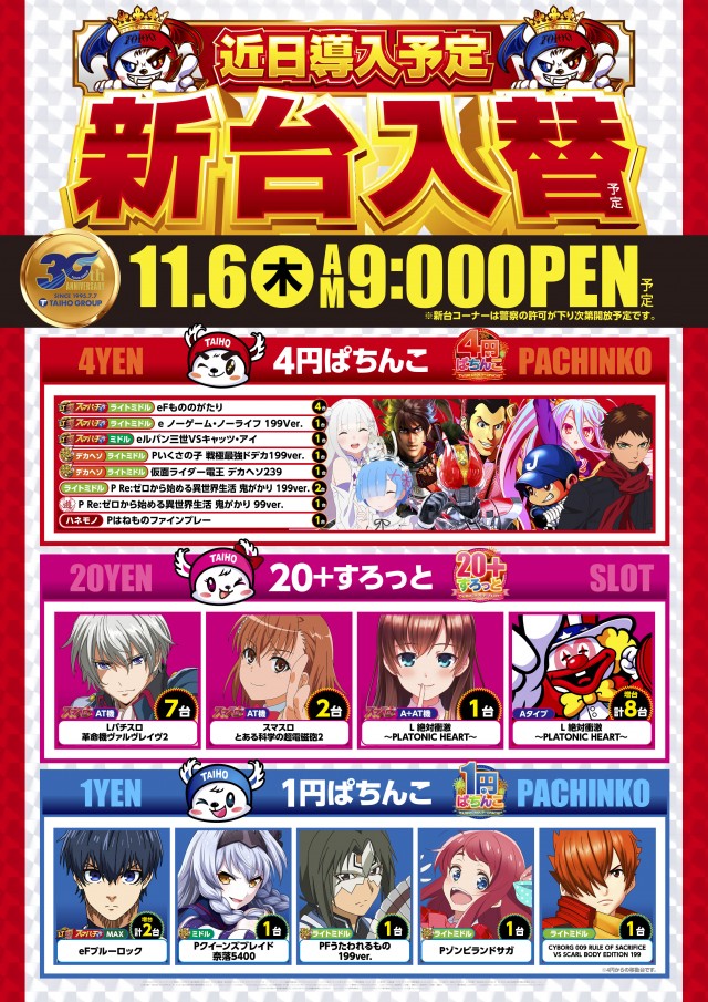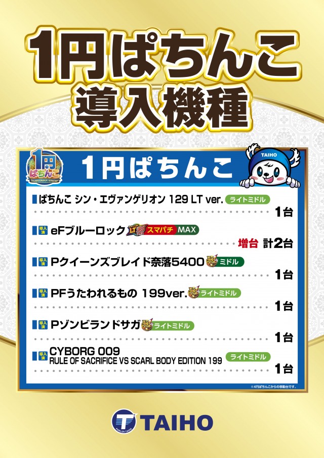 - ◇貯玉・再プレイ上限無制限! ◇1円ぱちんこ地域最大級設置店! ◇全台に飛沫感染防止のパーソナルボード完備! ◇ぱちんこ全360台(4円200台/1円160台)にパーソナルシステム導入しています! ◇快適マッサージチェア・簡易血圧測定器設置♪お手洗いにはアロマハンドソープをご用意♪ ◇笑顔で元気なスタッフがおもてなし!
