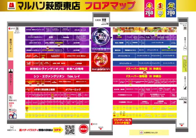 - [4]パチ:259台 [1]パチ:80台 [1000円/46枚]スロ:199台