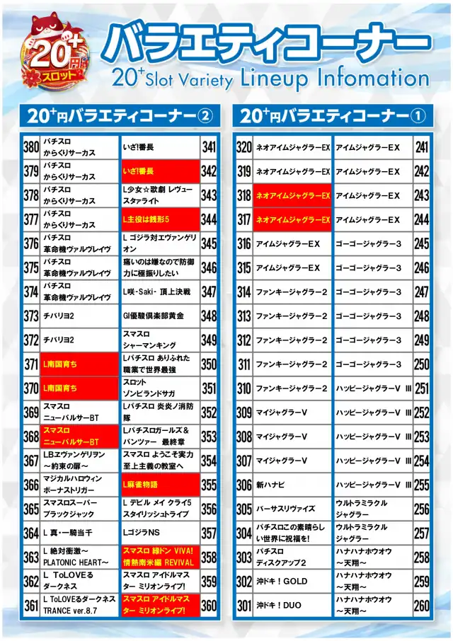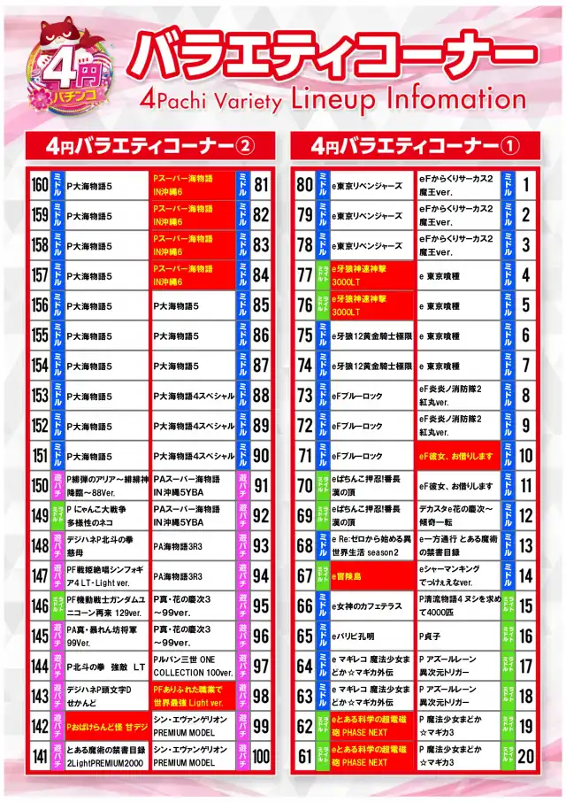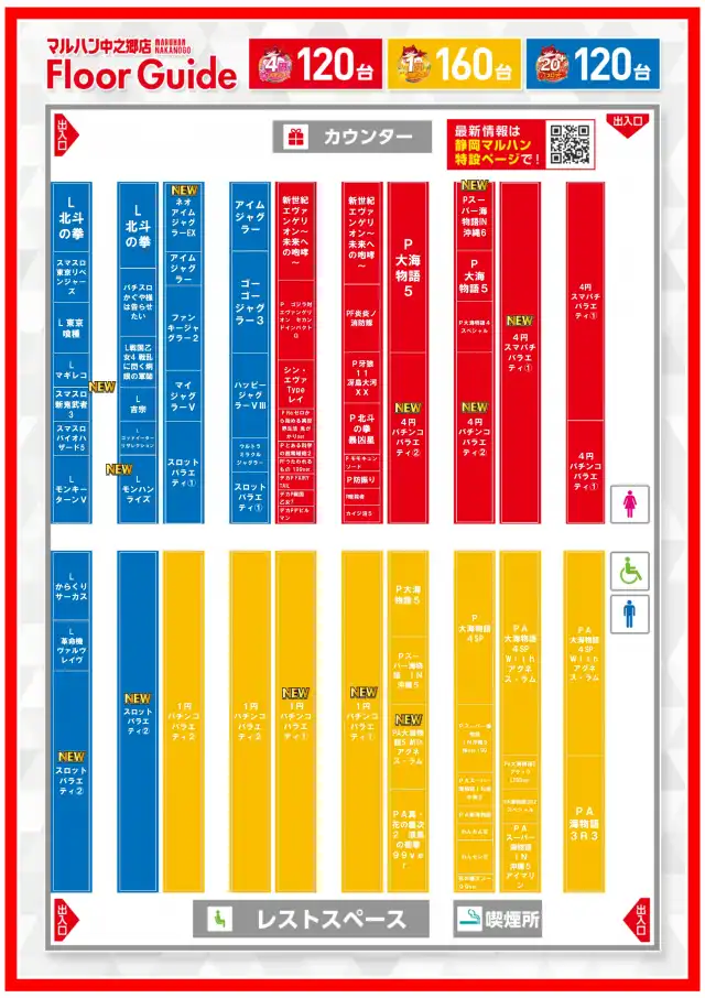 - [4]パチ:120台 [1]パチ:160台 [1000円/46枚]スロ:120台