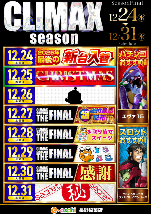 - [1]パチ:248台 [0.5]パチ:27台 [2]パチ:29台 [1000円/91枚]スロ:243台 [1000円/182枚]スロ:92台