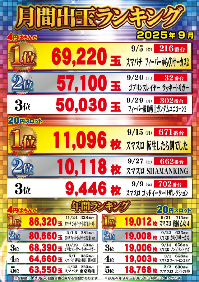 - [4]パチ:200台 [1]パチ:120台 [20]スロ:120台 [5]スロ:42台
