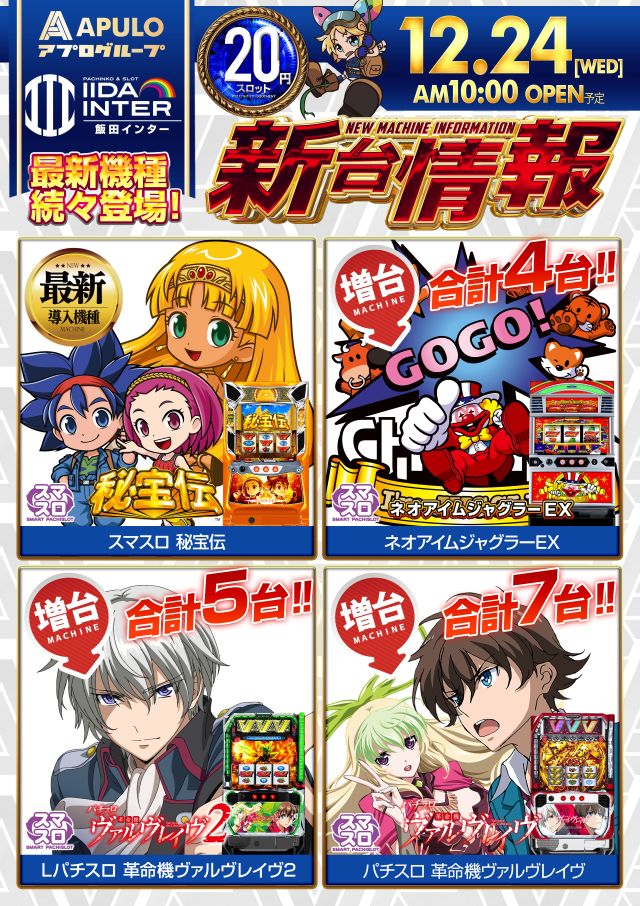 - [4]パチ:158台 [1]パチ:79台 [20]スロ:154台 [5]スロ:6台