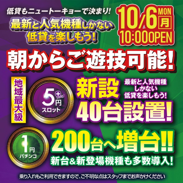 - [4]パチ:200台 [1]パチ:160台 [1000円/46枚]スロ:200台