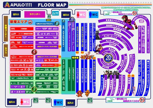 - [4]パチ:355台 [1.1]パチ:242台 [1000円/46枚]スロ:506台 [1000円/180枚]スロ:31台