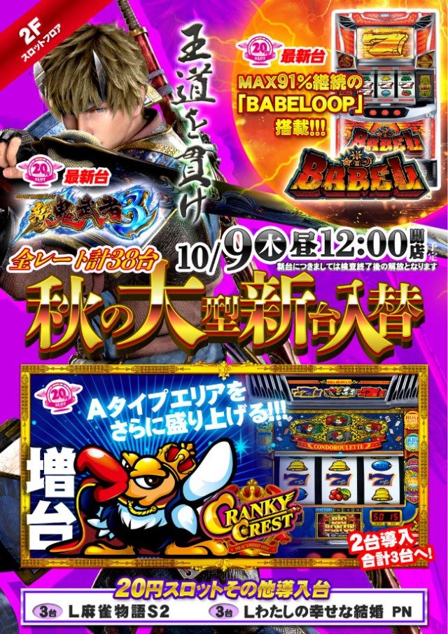 - 不定休(新台入替の際は店休日を頂く場合がございます。)