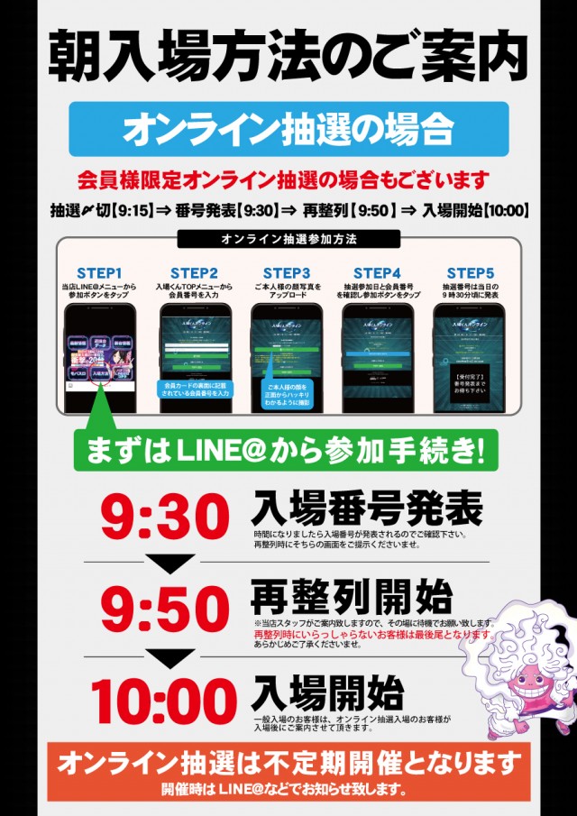 - 朝9:30までにお並び頂いたお客様を対象に抽選を致します。