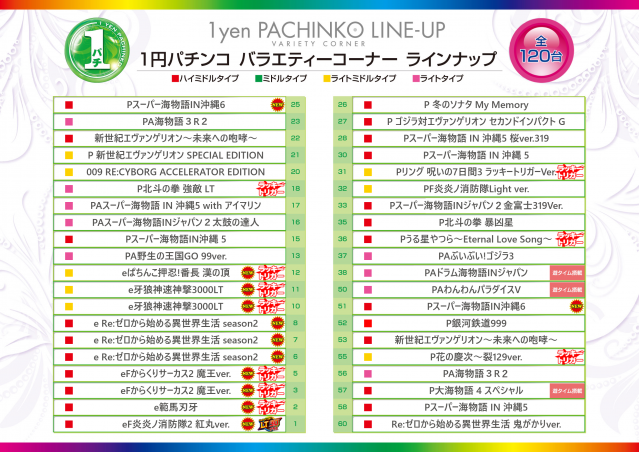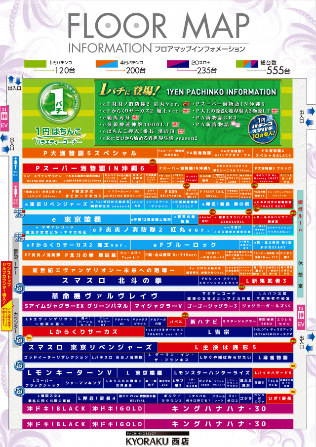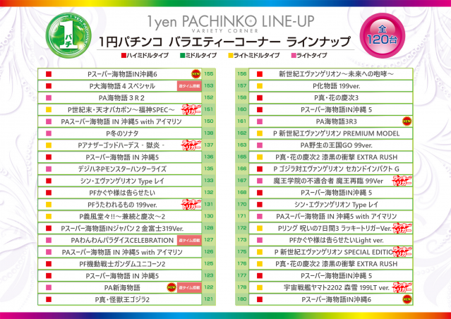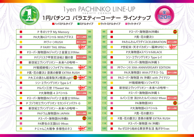 - 4円パチンコ 200台 1円パチンコ 120台 21.74円スロット 235台